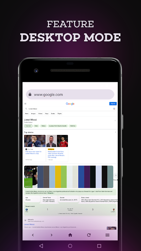 With a single tap, you can toggle any webpage between mobile layout and full desktop (PC) version. This view-switching can help you compare how a site optimises its design for different screen sizes during the same app session.